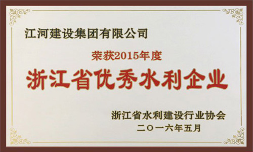2016年5月29日,浙江省水利建設行業協會第一屆理事會第三次會議在杭州之江飯店召開。會上聽取和審議了2015年度協會工作報告、財務報告,表彰了集體和個人先進。其中,江河建設集團有限公司榮獲“2015年度浙江省優秀水利企業”稱號,董事長袁偉忠被評為“2015年度浙江省優秀水利企業家”,張洪敏、葉吉松、虞國強三位同志被評為“2015年度浙江省優秀水利建造師”。