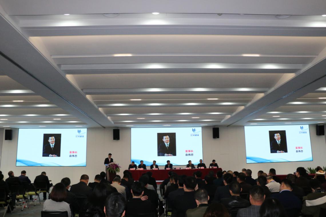 本次會議有七項議程,首先由總裁張偉良宣讀公司任職文件及領導分工安排,并作工作報告,規劃部署2019年工作。他表示,2018年在集團的支持下,公司完成了企業的整合、機構的建立、人員的調整、崗位的落實等,制定了各項管理制度,完善了公司內部組織架構和管理體系,公司各項工作已步入正規。2019年作為江河建設的開拓之年,總裁向全體員工提出了有效訂單52億、完成產值20億等在內的多項業績指標,并對營銷工作、生產工作、組織管理和其他條線等幾方面的工作提出了具體的工作要求。2019年,總裁希望全體員工不忘初心,堅持創新為首要,市場為根本,誠信為基礎,力爭超額完成任務。